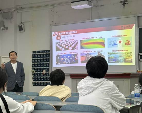 香承杰老师的报告展现了交叉学科的独特魅力,MOF材料用于沙漠取水、碳捕捉等领域,为同学们打开了一扇通往科技创新前沿的窗口。
