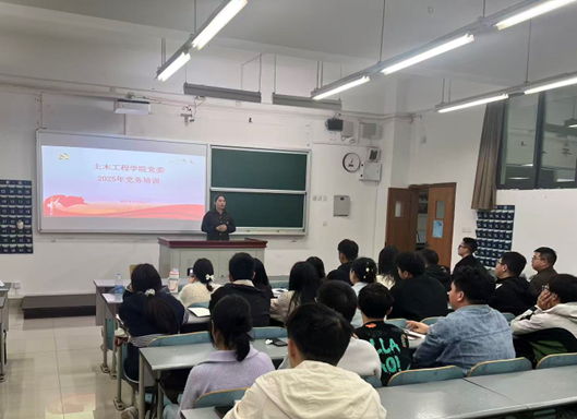 11月6日下午,土木工程学院党委在科学城A010120教室组织开展了2025年党务工作培训。本次培训聚焦于进一步提升学院党务工作水平,强化党务干部队伍建设。土木工程学院正处级组织员兼纪委书记任康丽,学工办主任、2025级研究生党支部指导老师秦静波,党务干事夏雪,研究生第七党支部书记纪浩平,以及全体2025级学生党支部委员共同参与了此次培训。会议由任康丽主持。