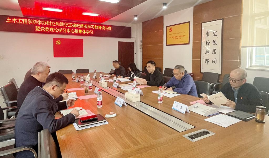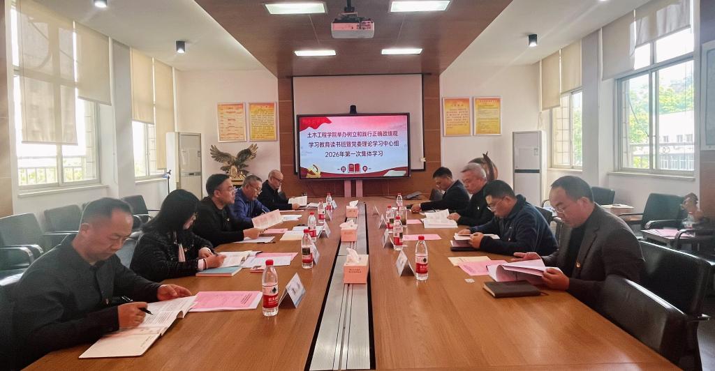 3月26日下午,土木工程学院树立和践行正确政绩观学习教育读书班暨党委理论学习中心组2026年第一次集体学习在90207会议室举行。学院党委书记冯瑞胜主持学习并作总结讲话,全体党委委员参加学习。
