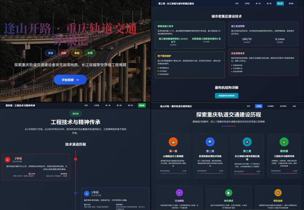 本期互动课堂围绕重庆轨道交通建设中的岩溶地质难题、长江穿越工程、城市密集区建设等三大技术挑战展开。通过动态学习、交互操作与在线测试等模块,沉浸式体验工程建设的实施过程,生动展现工程建设者们“逢山开路”的攻坚精神。课堂将理论学习与工程实践深度融合,使青年学生深入理解“两路”精神的时代内涵,增强专业认同感与使命感,为服务国家重大工程建设积蓄青春力量。