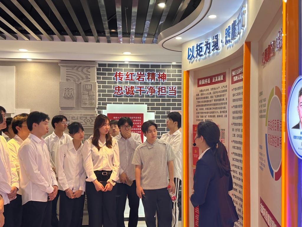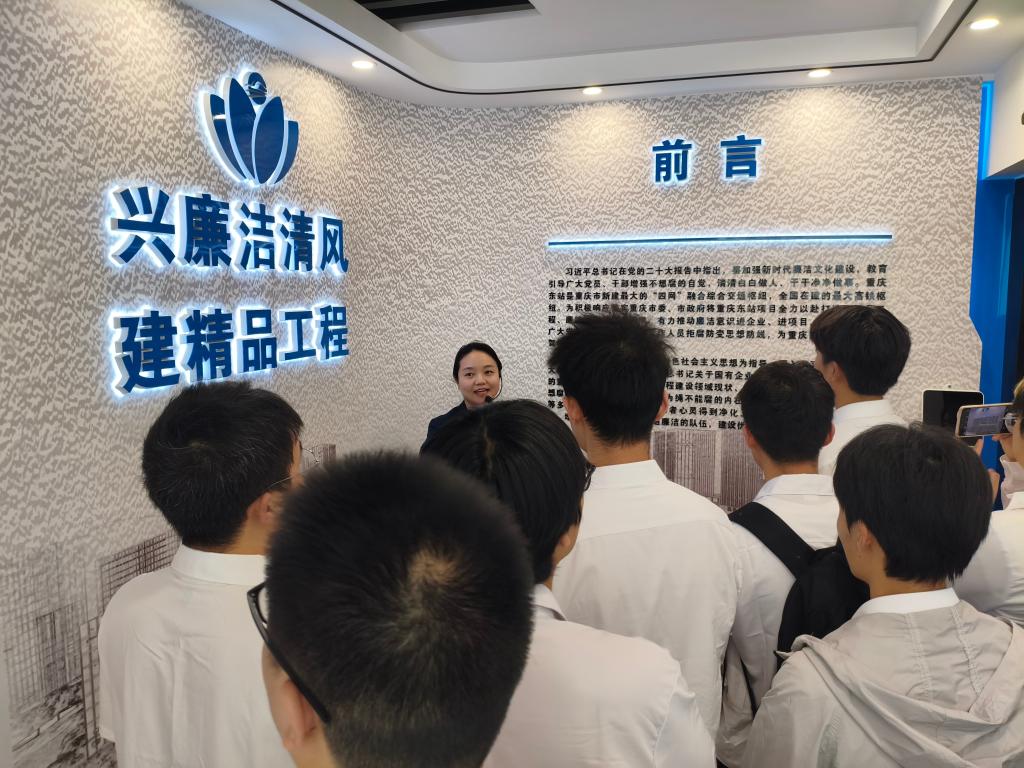 随后,全体学员走进重庆东站廉洁教育中心。在讲解员的引导下,大家依次参观了“学思践悟·砥砺廉心”“以文化人·崇廉尚德”“以案为鉴·惩腐警廉”“以矩为绳·践廉于行”四个展厅。工作人员通过图文展板展示、典型案例剖析、纪律规矩解读、情景化讲解等多种形式,系统阐释廉洁文化的丰富内涵,明确工程领域廉洁从业的具体要求,深入剖析行业内违纪违法典型警示案例,重点解读工程建设领域重点关键环节的廉洁风险点。