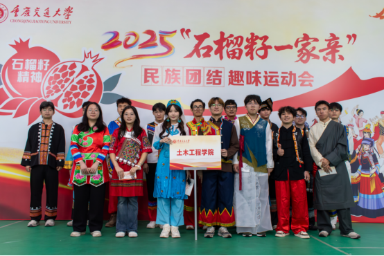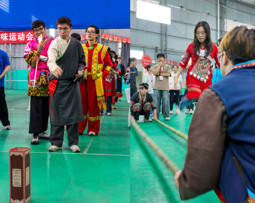 10 月 17 日下午14:30,重庆交通大学南岸校区羽毛球馆内,正上演着一场以“民族团结”为主题的活力盛宴。“石榴籽一家亲”民族团结趣味运动会在此热力开赛,土木工程学院16名少数民族学生以体育为纽带,在蒙古族射箭、傣族丢包、壮族走板鞋等充满民族风情的竞技中绽放绚丽光彩,取得团体第二的成绩。