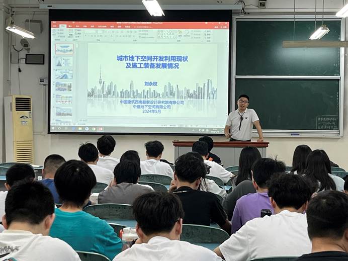2024519日上午930,应土木工程学院邀请,中建地下空间公司地下空间研究院刘永权院长在南岸校区二教209教室,为我校师生作了题为城市地下空间开发利用现状及施工装备发展情况的前沿微课学术讲座,讲座由土木工程学院结构系主任涂义亮主持。