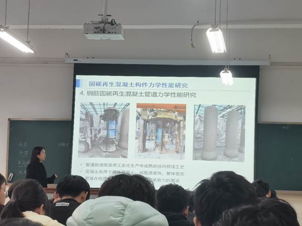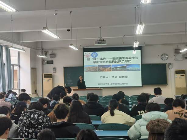 2025年12月5日下午,我校土木工程学院前沿微课系列讲座迎来了一场聚焦可持续建筑与低碳未来的精彩分享。重庆科技大学土木工程学院余洁副教授应结构系教师周建邀请,为我校师生作了题为《筑“绿”成势——固碳再生混凝土与装配式组合结构的碳负时代》的学术讲座。本次讲座吸引了学院100余名师生齐聚南岸校区第二教学楼405教室,共同探索土木工程领域绿色发展的前沿路径。