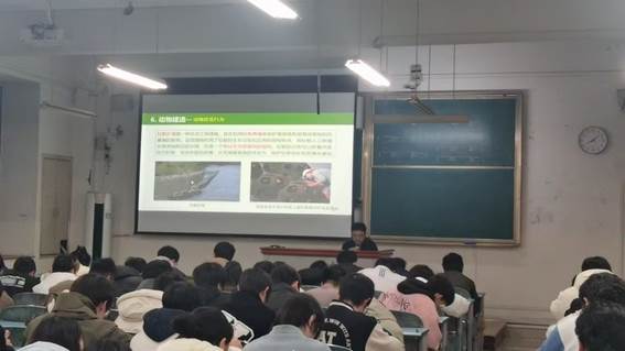 授课过程中,肖鹏工程师结合大量工程案例与科研数据,生动展示了生物建造技术在降低碳足迹、提升建筑生态兼容性等方面的显著成效。他强调,生物建造技术的发展并非对传统建造模式的替代,而是通过学科交叉实现的创新升级,其核心价值在于将生态友好理念深度融入工程建造全过程,推动土木建筑业从“资源消耗型”向“循环可持续型”转变。